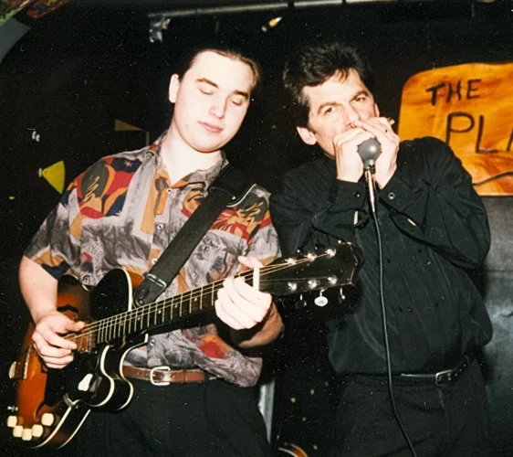 Kim Wilson formed his first blues band as a side project from the Fabulous Thunderbirds when I was in Massachusetts, and he brought that outfit to the Plantation Club in Worcester. That was when I first met Kim’s great young guitarist, Rusty Zinn. The photo above documents a rare meeting in Worcester of three of my all-time favorite harmonica players. Pierre Beauregard, on the left, is a real master on the diatonic. He and Magic Dick were partners for several years in an effort to bring new tunings for the diatonic harmonica to market. Hearing Pierre play his inventions was an unforgettable experience for a harp player. In the center of the photo is the phenomenal Mike Turk, who for my money is not to be beat as a jazz artist on the chromatic harmonica. I would travel a long ways to hear Mike play the chromatic. Mr. Turk is also a very charming gentleman who appreciates the finer things in life.